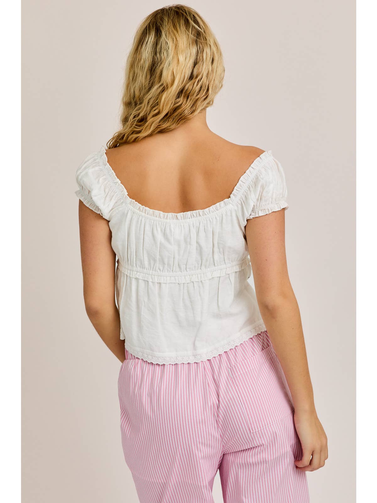 Cap Sleeve Square Neck Pleated Detail Open Top
