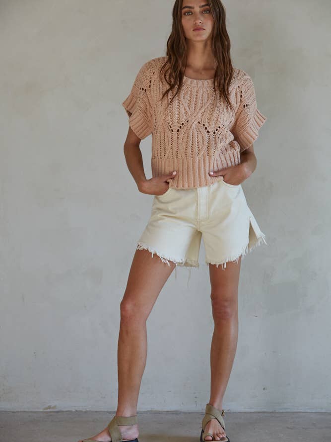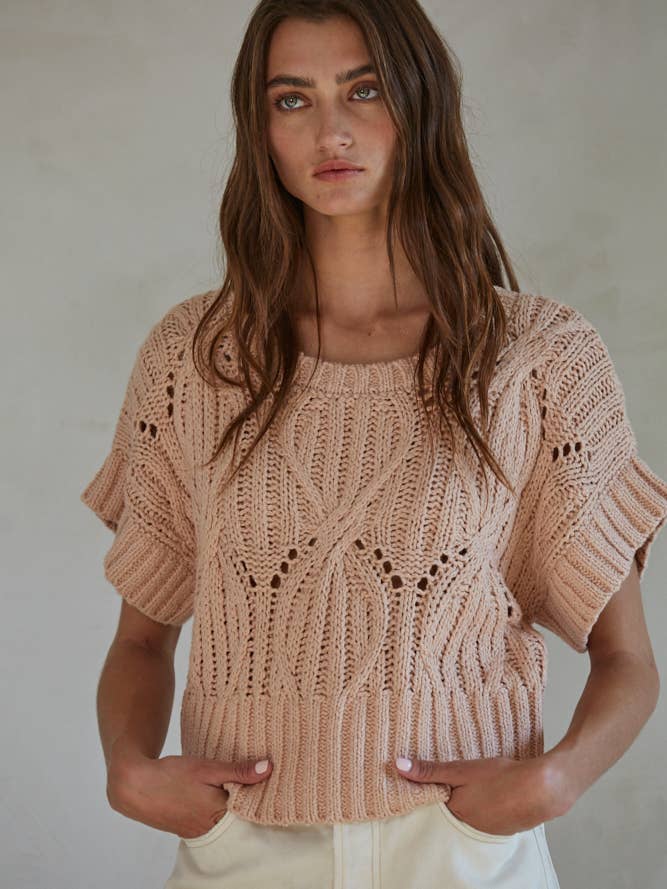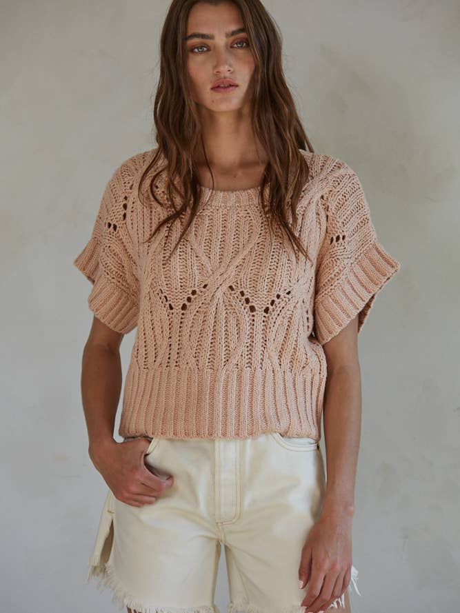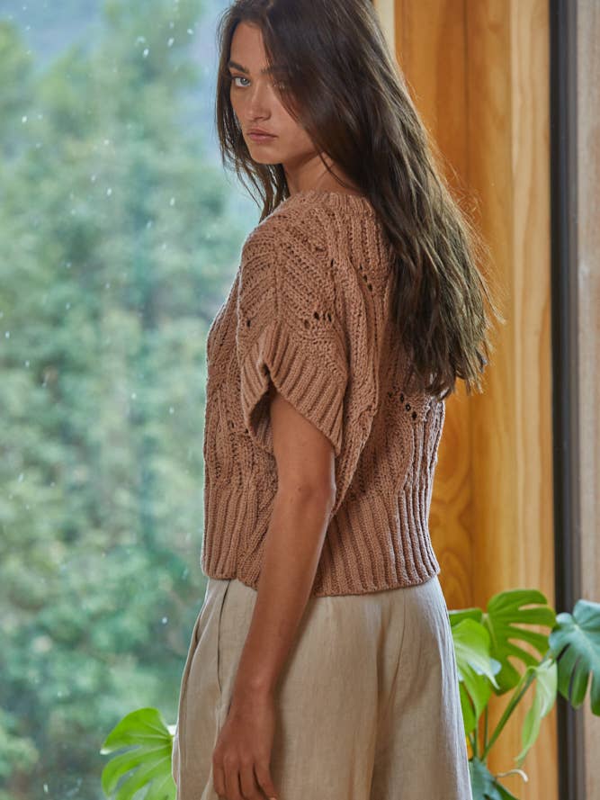 Immerse yourself in the ultimate luxury of ready-to-wear fashion with By Together's CALI CROCHET TOP. This trendy Boho Chic knit sweater features a round neck and short sleeves, making it perfect for everyday wear. Crafted with 96% cotton and 4% nylon, it offers a comfortable contemporary fit. Suitable for the fall/winter season, this preppy top requires hand washing. With By Together, you are investing in timeless fashion tailored for the everyday woman.