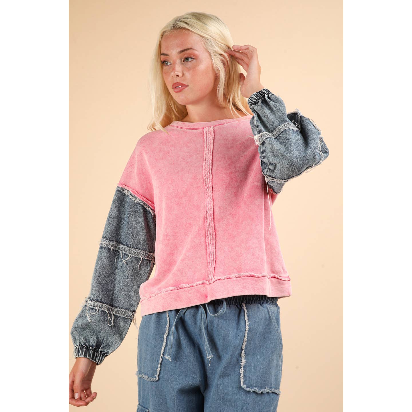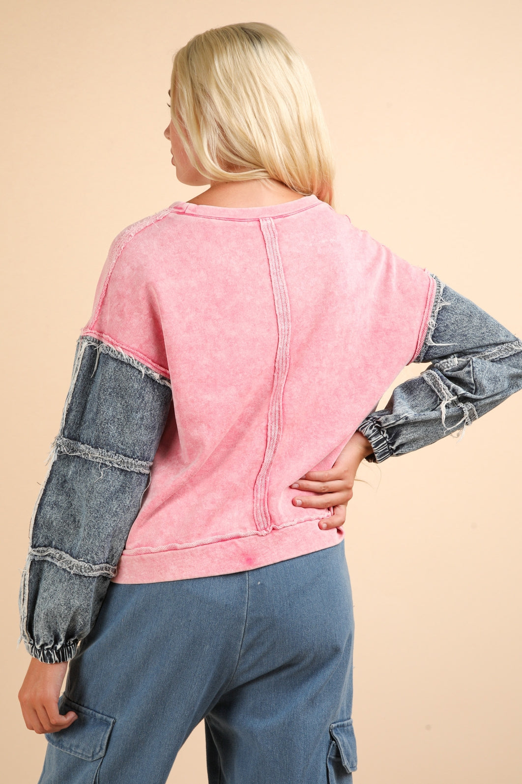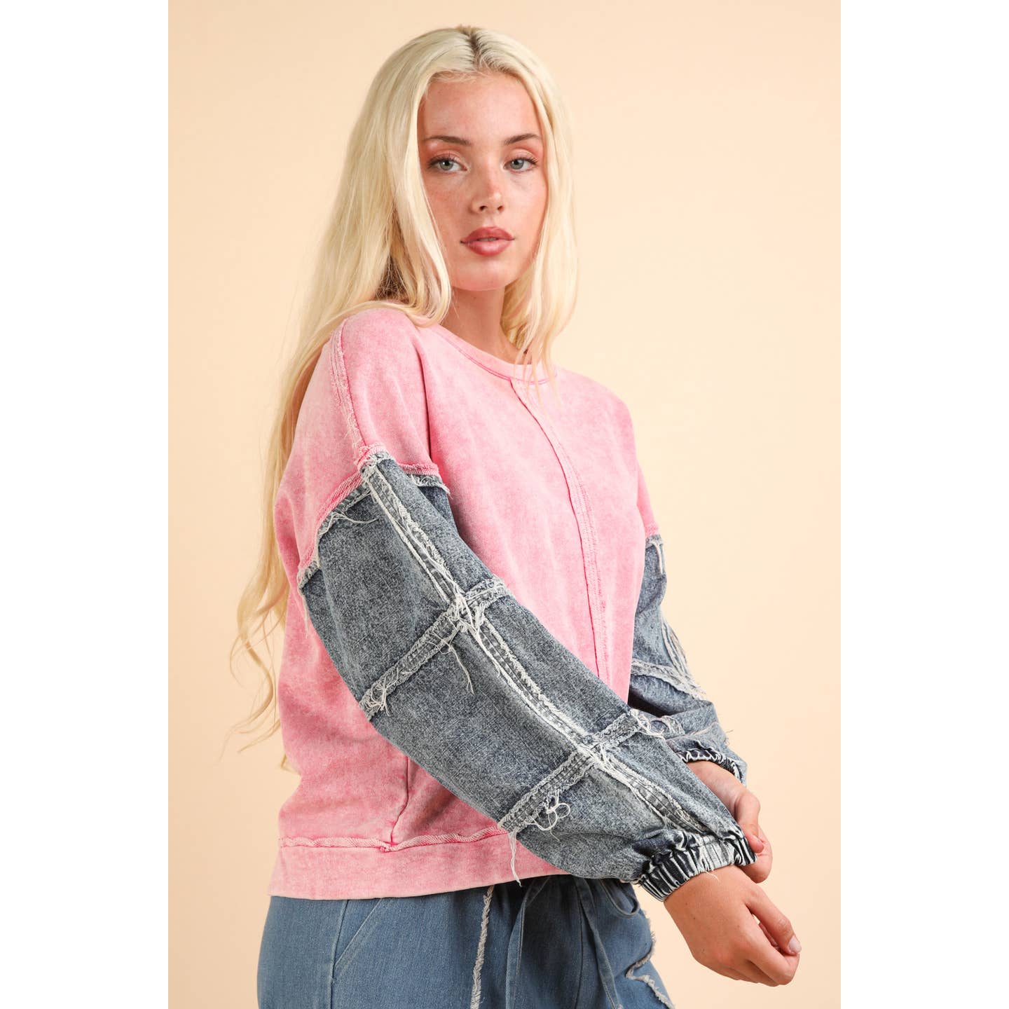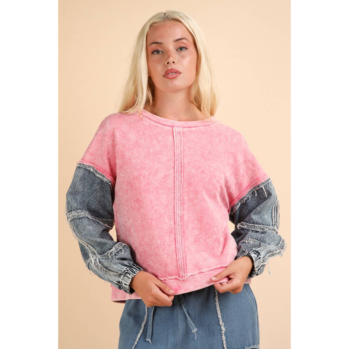- Acid Washed Oversized Denim Sleeve Casual Top