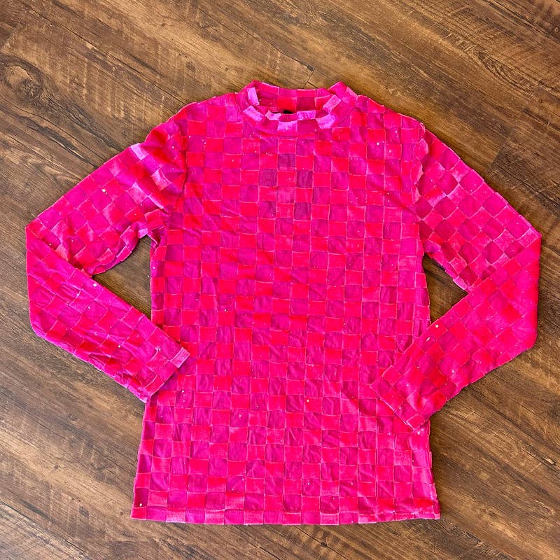 This You Da Bomb Top Pink is sure to set you off in style! With an eye-catching pink mesh checkered top and velvet squares sprinkled with sparkles, you'll light up the room! Get ready to be the center of attention when you wear this firecracker of a top. Boom!